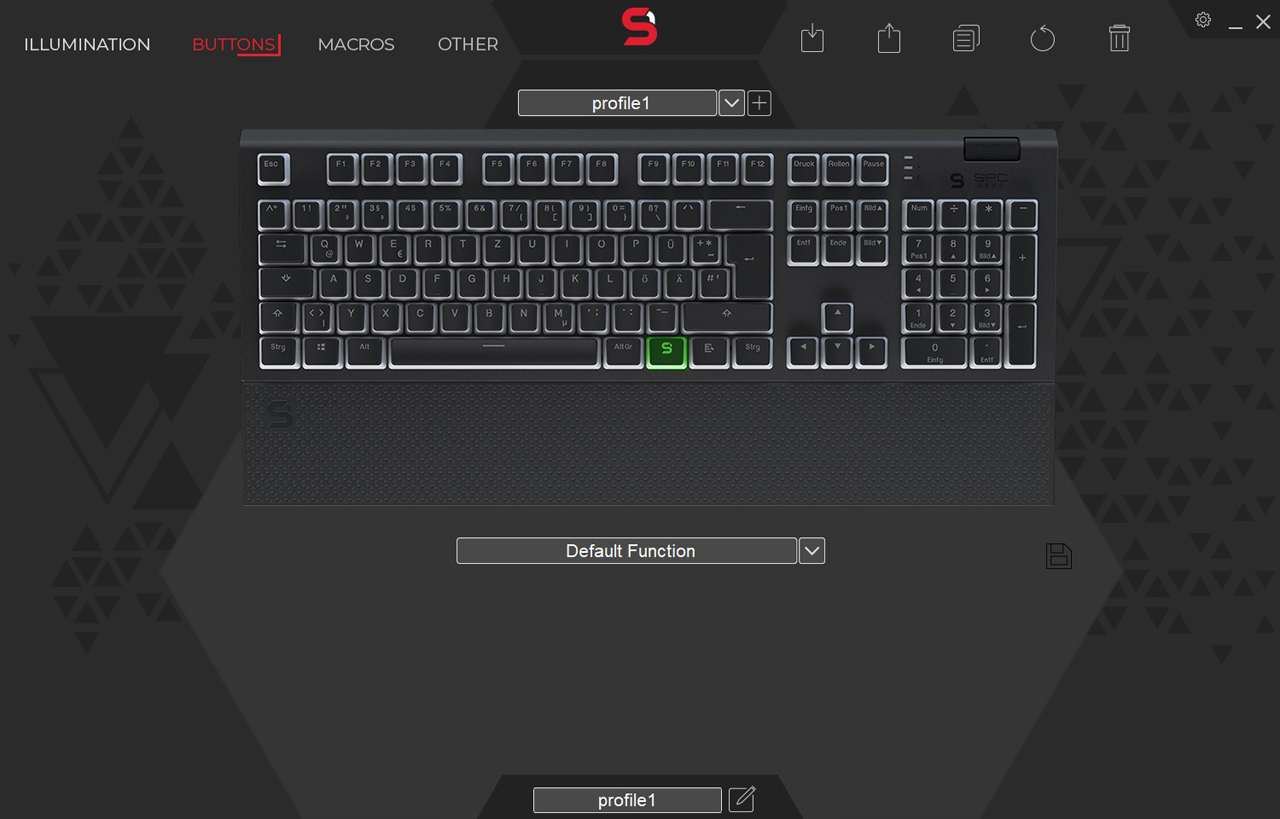 Heutzutage mittlerweile schon zum Standard bei Eingabegeräten, Headsets und Co. gehört die passende Software (welche nicht von Microsoft signiert ist), um beispielsweise Anpassungen an Beleuchtungen, Profile, Makros und vieles mehr konfigurieren und an die persönlichen Vorlieben angleichen zu können. SilentiumPC bietet hier ebenfalls die passende Software (getestete Version V1.0.1.0) an. Diese ist auch notwendig, um eine derart komplexe Tastatur nach dem Belieben der Anwender anpassen zu können. SilentiumPCs Hauptaugenmerk in der Software liegt auf der Beleuchtung und der Tastenbelegung inklusive Makros.