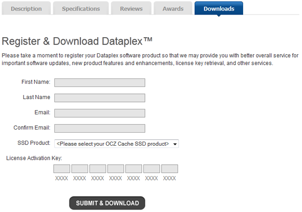 Bei der Installation des Betriebssystems auf dem RevoDrive Hybrid muss der entsprechende Treiber geladen werden. Anschließend an die Windows-Installation begibt man sich auf die OCZ-Website und lädt unter der Kategorie "Downloads" die Dataplex-Software herunter (hierfür wird der Licence Key benötigt). Während des Setups der Software legt man fest, mit welcher HDD die SSD des Hybrid-Drive interagieren soll – man wählt natürlich die integrierte Toshiba-Festplatte. Nach Abschluss der Installation ist die Einrichtung prinzipiell abgeschlossen.