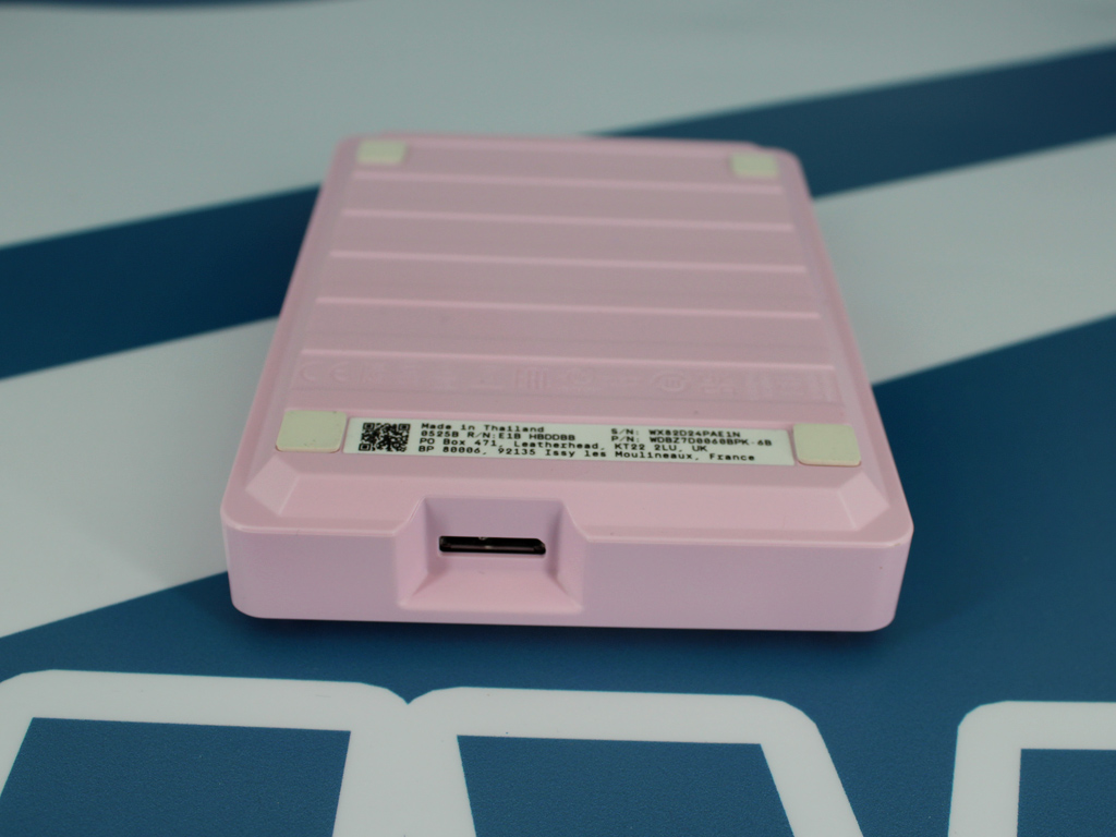 Hinsichtlich Robustheit macht WD keine besonderen Angaben in den Datenblättern. Bei der Schnittstelle handelt es sich um die eher schon etwas weniger zeitgemäße USB Typ Micro-B, die maximal 5 Gbps erreicht (USB 3.2 Gen1). Die Geschwindigkeit beziffert WD mit 130 MB/s, was wir im Rahmen unserer Messungen noch überprüfen werden. Mehr zur Performance erfahren Sie ab Seite 4 des Artikels.