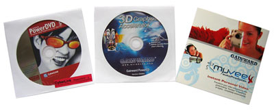 Bei den genannten Datenträgern handelt es sich zum einen um die Treiber-CD, welche einen aktuellen Nvidia ForceWare Treiber zum Betrieb der Grafikkarte beherbergt. Des Weiteren finden wir noch CyberLinks bekanntes PowerDVD 5 und Muvee autoProducer 4 - eine Video Bearbeitungs Software - in der Verpackung vor. Bei dem erwähnten Handbuch handelt es sich besser gesagt um eine mehrsprachige Kurzanleitung, welche unter anderem die wichtigsten Schritte in deutscher Sprache enthält und dem Laien den Einbau erleichtert. Neben einem Kabel für die Stromversorgung und zwei DVI/VGA-Adaptern legt Gainward außerdem eine praktische Kabelpeitsche bei. Mit dieser Peitsche können alle TV-Out Features genutzt werden - S-Video und Chinch. Mit dabei ist normalerweise ein Gutschein, welcher unserer Karte jedoch nicht beilag: Der Spieler kann sich damit unter www.gainwardgamingzone.com ein Spiel aussuchen und unter Angabe der Seriennummer des Scheines ein Spiel kostenlos zusenden lassen. Folgend der komplette Lieferumfang der Karte aus dem Hause Gainward im Überblick.