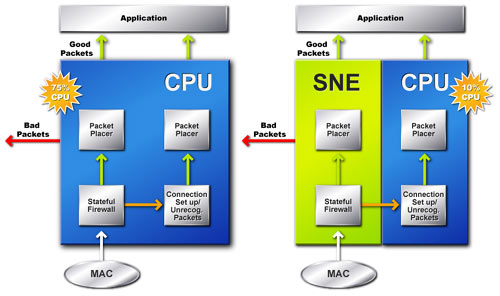 Mit dem neuen nForce 4 bringt Entwickler Nvidia nicht nur mehr Leistung und Features in kommende Systeme, sondern auch Sicherheit - Firewall 2.0. Die bereits vom nForce 3 bekannte und nützliche Hilfe hat nun einige Updates erfahren und neue Funktionen gewonnen - die neue Secure Networking Engine setzt sich zum Teil aus bekannten Features zusammen, da SNE eine Kombination der bekannten Nvidia Firewall und der ActiveArmor Secure Engine ist. Neben dem neuen Intelligent Application Manager (IAM) und weiteren Funktionen, hat man sich auch Gedanken um die Performance des Ganze gemacht und deutliche Fortschritte im Bereich erzielt. So sinkt die CPU-Belastung durch die Aktivierung der ActiveArmor Engine auf durchschnittlich etwa 10 Prozent - Deaktiviertes ActiveArmor sorgt laut Nvidia für Belastungen von bis zu 75 Prozent, da hier der Chipsatz nicht in die Paketkontrolle mit eingreift. Weitere Informationen zur Nvidia Firewall in den folgenden Abschnitten.