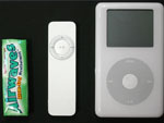 Apples iPods zeichnen sich alle durch eine relativ gute Klangqualität aus, die zwar nicht das Nonplusultra darstellt, aber dennoch mit zu der besten ihrer Klasse gehört. Der iPod shuffle verbessert die guten Werte nochmals etwas. Das Hörvergnügen wird durch die mitgelieferten Ohrhörer allerdings etwas beeinträchtigt da diese nur zum besseren Druchschnitt gehören. Verwendet man jedoch höherwertige Kopfhörer oder schließt den iPod shuffle an eine Stereoanlage an, so wird man mit einem wirklich guten Klangerlebnis belohnt – welches wiederrum nur durch das Audioformat und dessen Bitrate limitiert wird. Apple gibt für den iPod shuffle eine Kapazität von 120 Songs beim 512 MB Modell und 240 Songs beim 1 GB Modell an. Diese Zahlen beziehen sich auf das AAC-Format mit 128 kBit/sec. Das AAC-Format kodiert etwas effektiver als MP3 und entspricht bei einer Bitrate von 128 kBit/sec etwa einer MP3-Datei mit 160 kbit/sec. Als AAC-Dateien liegen übrigens auch die Songs aus dem iTunes Music Store vor, die allerdings mit einem DRM (Digital Rights Management) versehen sind und nur von Apples iPods abgespielt werden können.