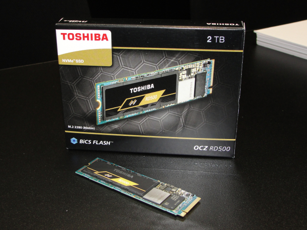 Ebenso zeigte man die RD500, die satte 3.400 MB/s lesend und 3.200 MB/s bei Schreibzugriffen erlaubt. Zufällige Leseoperationen sind mit 685.000 IOPS spezifiziert und Random-Write-Zugriffe mit 625.000, wofür ein 8-Kanal-Controller zum Einsatz kommt. Toshiba wird die Laufwerke ab November in den Handel bringen und mit einer Garantiezeit von fünf Jahren ausstatten. In die Regale werden Modelle mit 500 GB, 1 TB und 2 TB kommen.