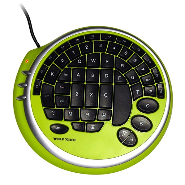 Links neben dem Haupttastenfeld sitzt das Gamepad. Auf dem Gamepad finden wir neben den WASD-Tasten etliche weitere Zusatztasten. Insgesamt werden 40 Tasten geboten, die alle gängigen Funktionen in Spielen abdecken können. Allerdings ist das Pad laut Aussage des Herstellers für CS optimiert, so dass etwa die Taste K für den Teamspeak sowie die Tasten Z,X und C vorhanden sind. Die Tasten O und B für das Einkaufsmenü in CS sind, ebenso wie die < >-Tasten für den Munitionskauf, am rechten Rand des Pads angeordnet. Hinzu kommt, dass die Space-Taste vertikal liegt und so platziert wurde, dass sie unter dem linken Daumen zu liegen kommt. Auch eine Ctrl-, Shift- und Tab-Taste sind vorhanden. Hier merkt man, dass das Gamepad in erster Line auf Counterstrike und andere FPS zugeschnitten wurde. Die Tasten sind je nach Funktion farblich abgesetzt und erleichtern die Orientierung nochmals. Die Idee, die dahinter steckt, wird von Wolfking als der ‚Circle of Death’ bezeichnet. Diese Bezeichnung leitet sich laut Wolfking aus dem Umstand ab, dass in vielen Kampfsportarten eine Nahzone um den Kämpfenden besteht, in der potentiell jeder Gegner erreicht werden kann. Genau in diesem Sinne will Wolfking das Arrangement und die Aufteilung des Gamepads verstanden wissen.