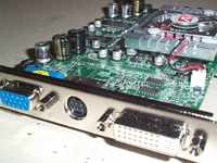 Neben dem Standard VGA-Anschluss, findet man noch einen DVI-Ausgang für Flachbildschirme und einen TV-Ausgang (S-Video oder Composite via Adapter-Kabel). Die maximale Auflösung des TV-Ausgangs beträgt, wie bei fast allen herkömmlichen Desktop-Grafikkarten, 1024 x 768 Pixel, was auch völlig ausreichend ist. TFT-Displays können mit einer Auflösung von bis zu 1900 x 1200 betrieben werden. Bei Standard VGA Monitoren liegt die maximale Auflösung bei 2048 x 1536...